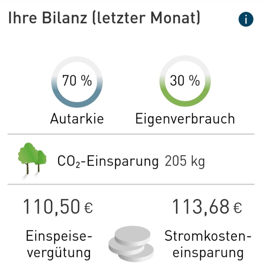 Wir tanken ausschließlich an der eigenen PV - hauptsächlich Stadtverkehr, Landstrasse, seltener Autobahn. Durchschnittlich fahren wir 7500 km im Jahr. Angenommen, wir würden für die KmLeistung einen Benziner nehmen, mit d=7 ltr/100 km, kämen wir bei einem weiter angenommenen Benzinpreis von 1,50€/Ltr auf 10,5€ x 75 (7500 km) auf ca 800,00 € dazu kommen noch die Einspeisung und Erstattung Stadtwerke von ca 600,00 € = insg. ca 1400,00 € Ersparnis plus/minus, was Deckungsgleich ist, mit den Kosten, die wir an die Stadtwerke voraus bezahlen.