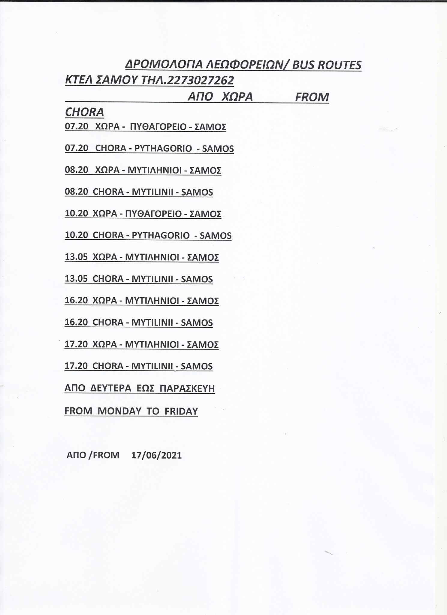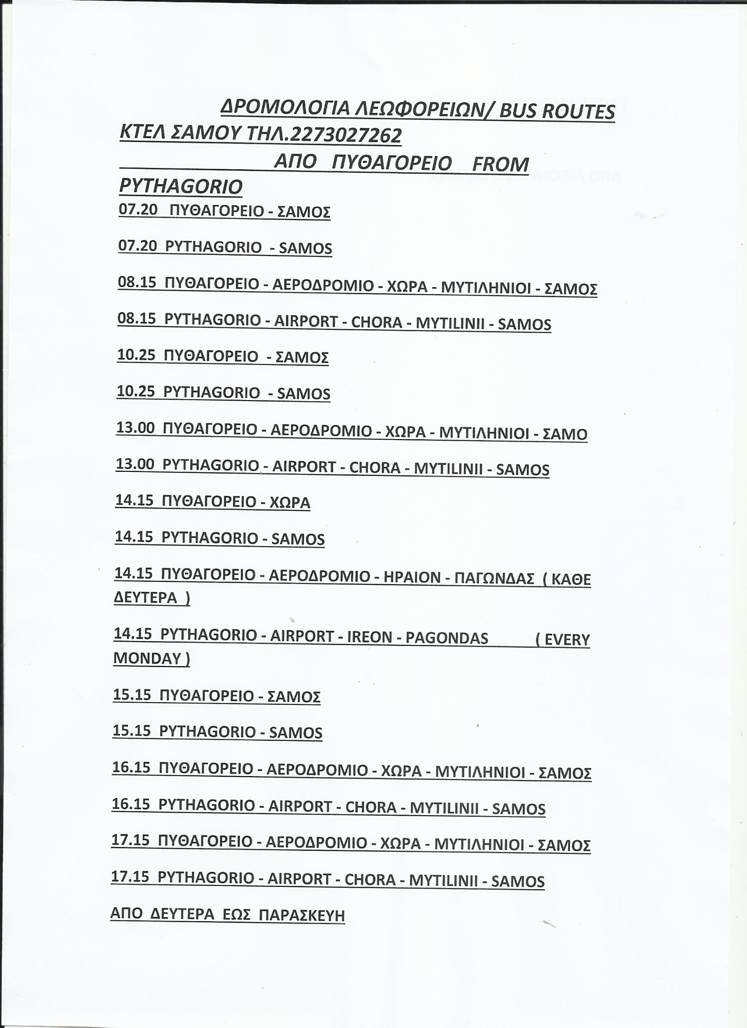 ΠΥΘΑΓΟΡΕΙΟ - ΧΩΡΑ - ΜΥΤΙΛΗΝΙΟΙ - ΣΑΜΟΣ: 08:20-11:20-13:00-17:20