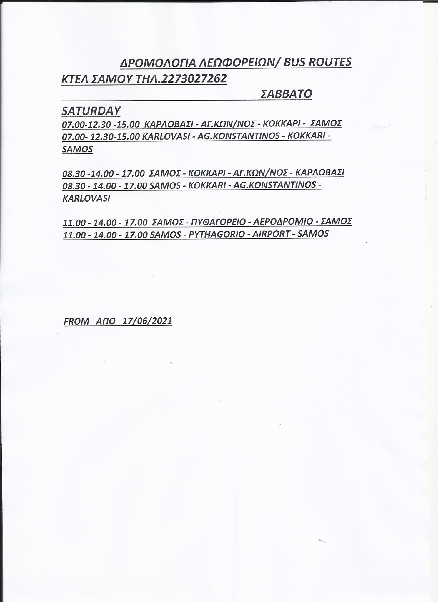 ΚΑΡΛΟΒΑΣΙ-ΑΓ.ΚΩΝ/ΝΟΣ-ΤΣΑΜΠΟΥ-ΑΥΛΑΚΙΑ: 09:30-12:30-15:00