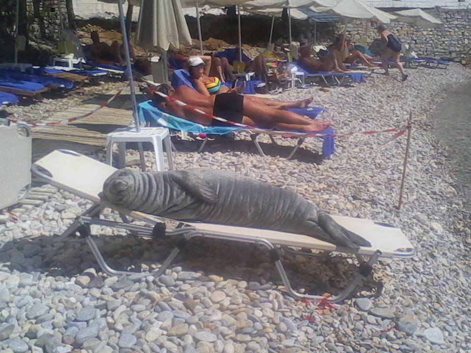Das Bild ist recht aktuell und kein Fake, der kleine Seelöwe lässt es sich in der Saitani-Bucht gut gehen. (Danke an den unbekannten Fotografen!!)